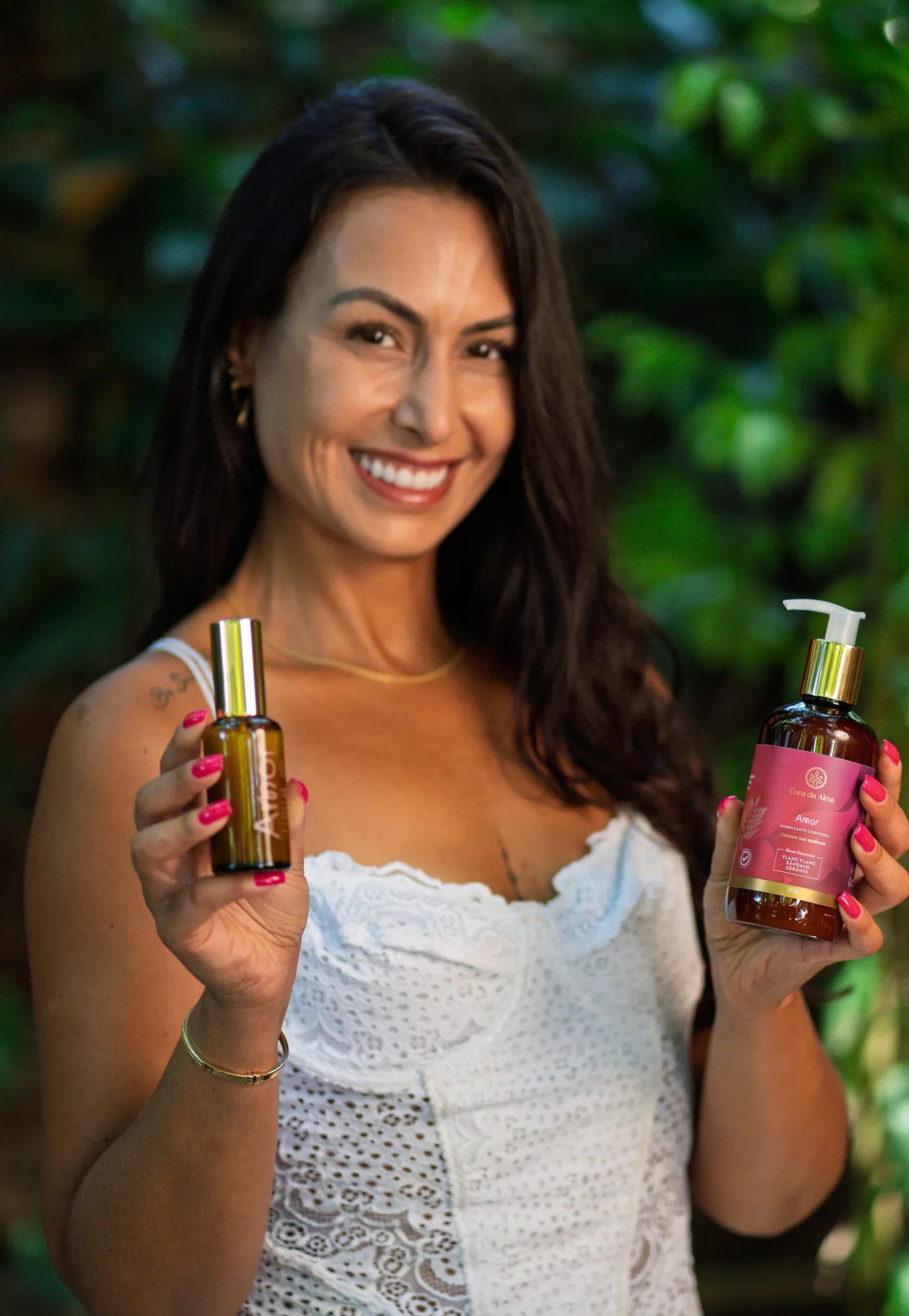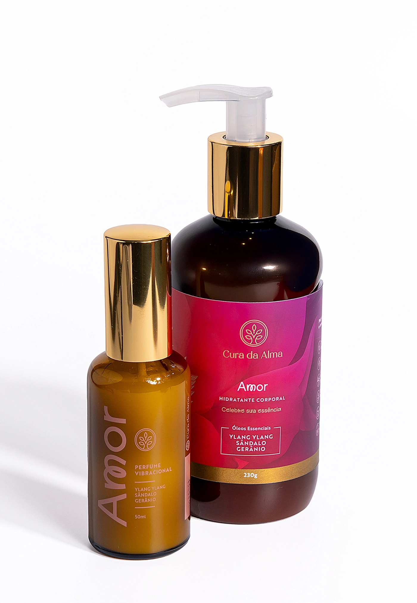 O hidratante e o perfume Amor atuam em sinergia por meio dos óleos essenciais presentes na fórmula, que auxiliam a suavizar tensões internas, promover equilíbrio emocional e fortalecer o amor próprio de forma contínua. O toque envolve, nutre e convida o corpo a desacelerar. O aroma acompanha e sustenta, criando uma sensação prolongada de conforto, acolhimento e bem-estar.
