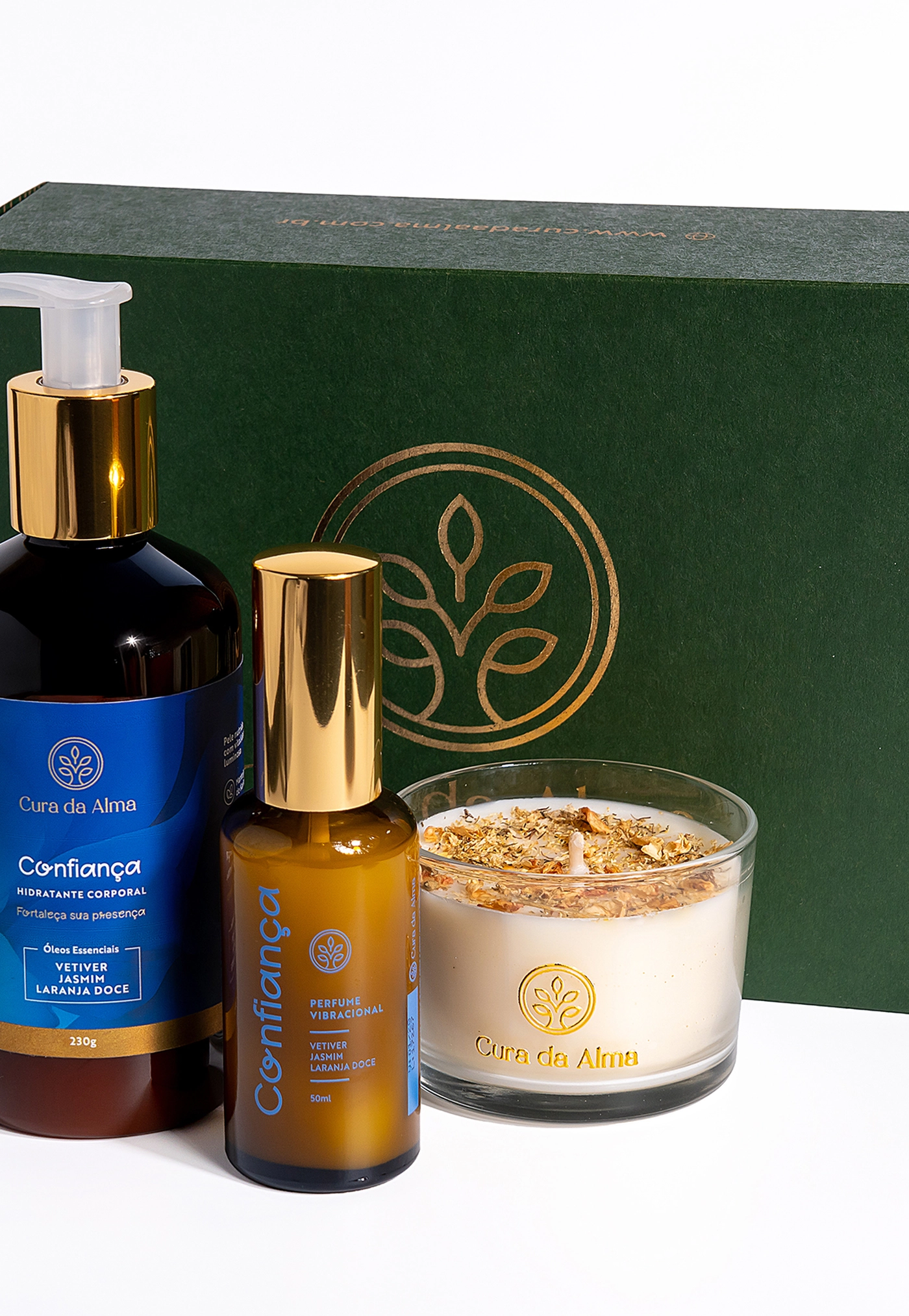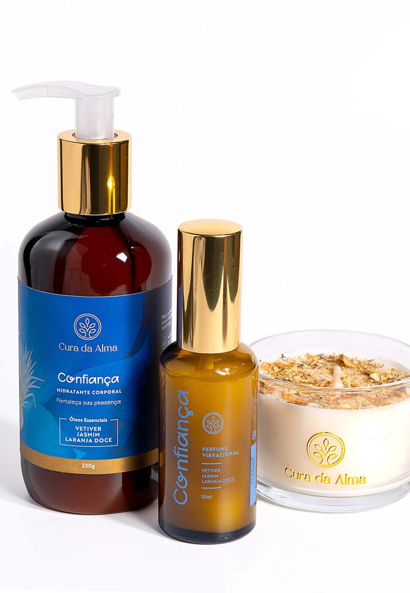No corpo, o hidratante e o perfume Confiança atuam através da sinergia dos óleos essenciais de Jasmim, Vetiver e Laranja Doce, que auxiliam na organização emocional, fortalecem a segurança interna e sustentam a presença ao longo do dia. O toque acolhe, ancora e prepara o interno para receber o ritual.