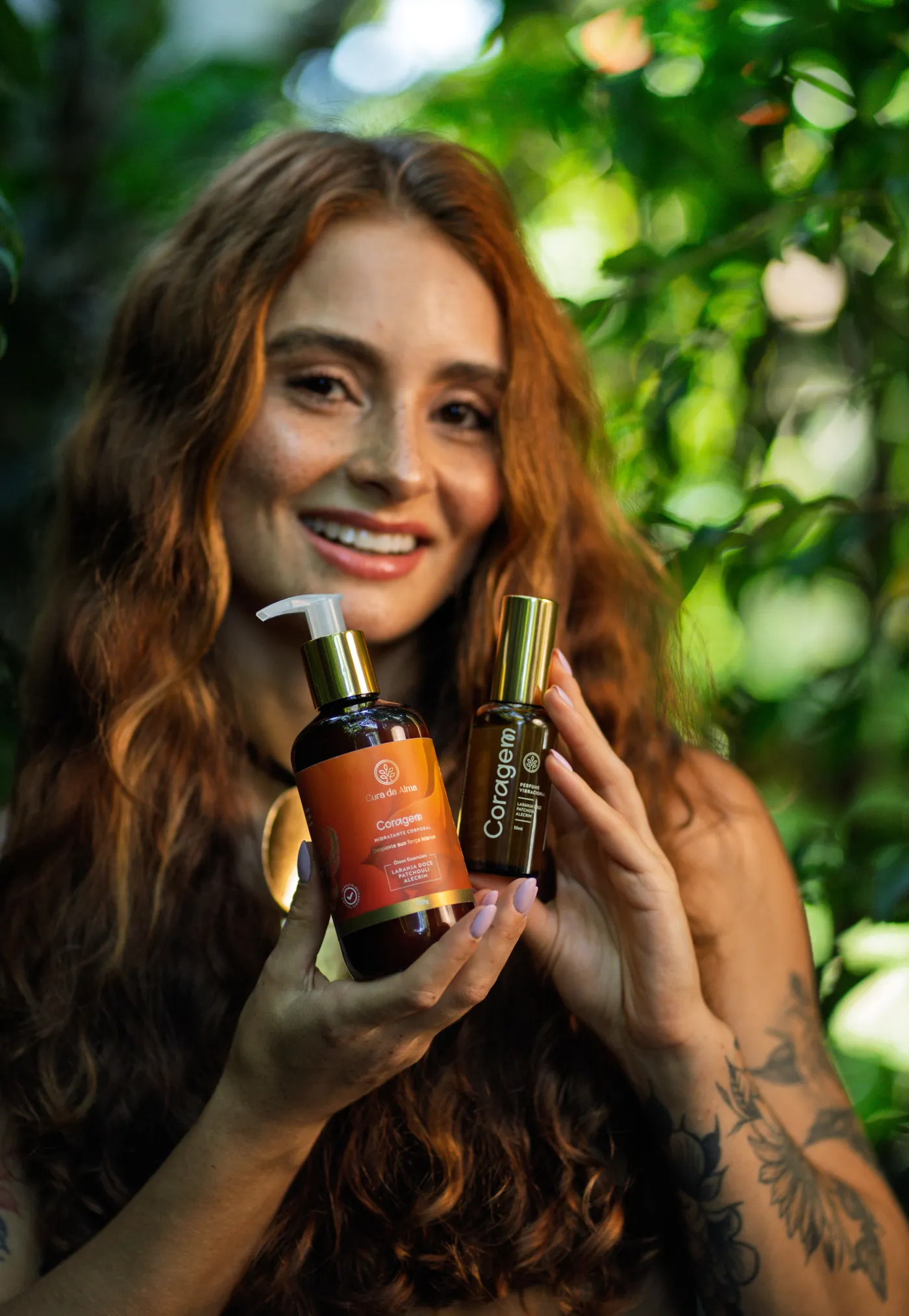 O hidratante e o perfume Coragem atuam em sinergia, criando uma experiência que começa no corpo e se sustenta ao longo do dia. A combinação presente na fórmula auxilia a dissipar o cansaço, clarear os pensamentos e fortalecer a disposição para agir. O toque desperta, nutre e ancora no presente. O aroma acompanha, estimula e sustenta o foco e a determinação.