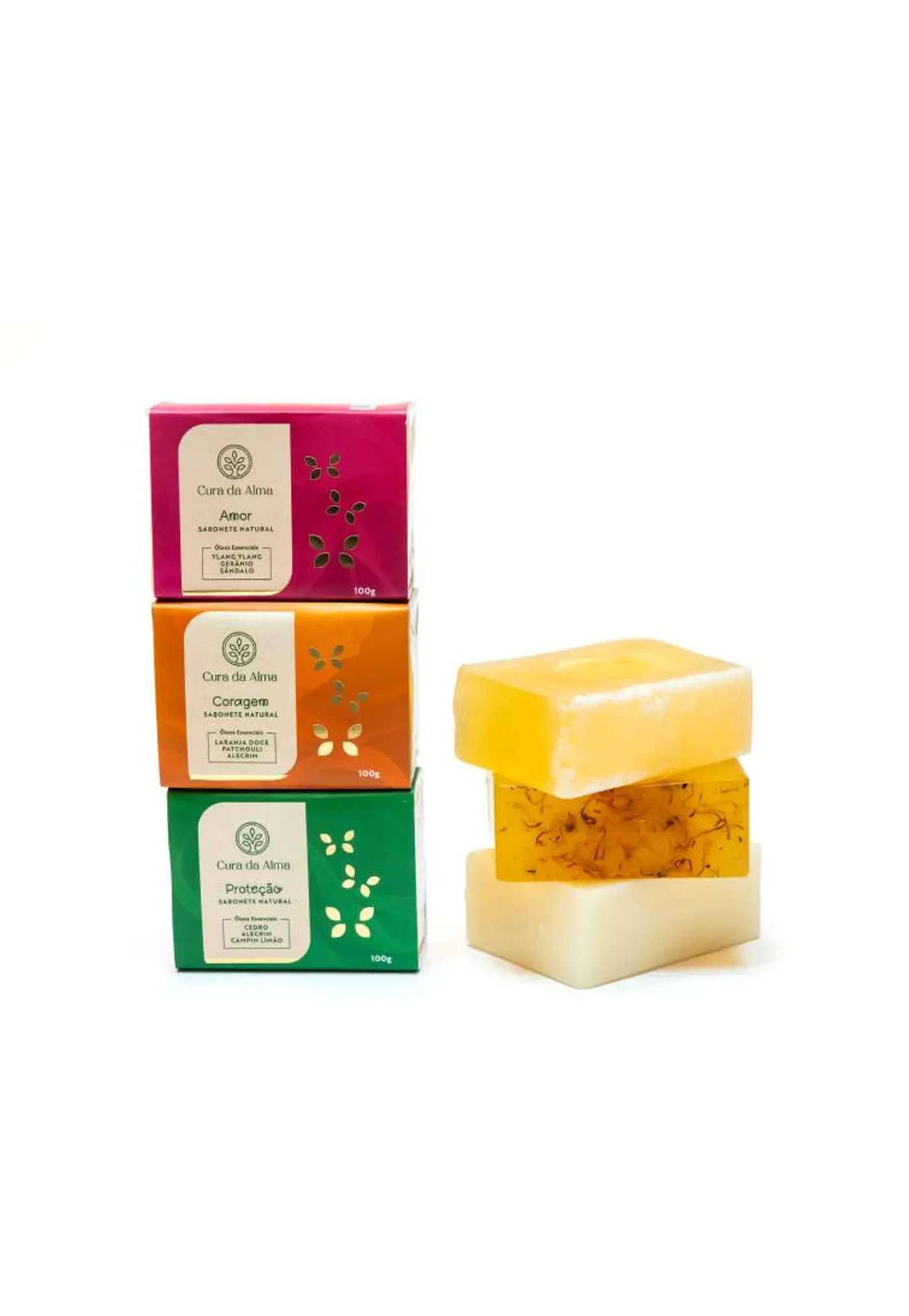 O sabonete PROTEÇÃO foi criado para quem busca leveza, clareza e equilíbrio no corpo e na energia. Com base glicerinada vegetal e ingredientes naturais, ele combina os óleos essenciais de Capim Limão, Cedro, Lavanda e Alecrim — juntos, eles purificam, acalmam a mente e elevam a vibração.